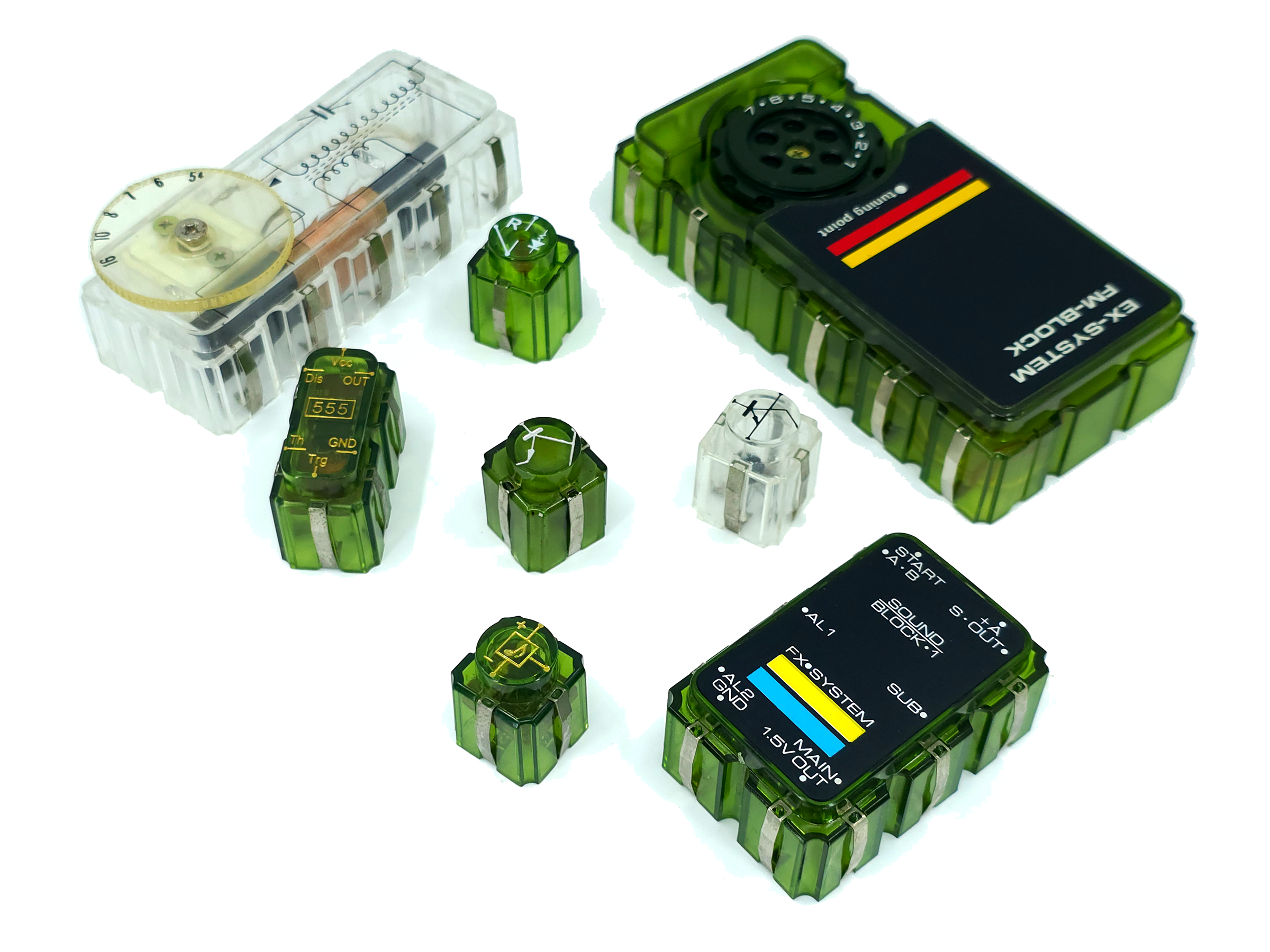 이번에 다룰 전자블록 시리즈는 갓켄(学研) 체제의 정점이었던 ‘전자블록 EX 시리즈‘ 입니다. EX 시리즈는 전기·전자회로를 다루는 제품으로서의 컨셉이 완성된 제품군이었으며, 기존의 DR, SR, ST 시리즈가 가지고 있었던 약점을 보완하면서도 블록을 조립하는